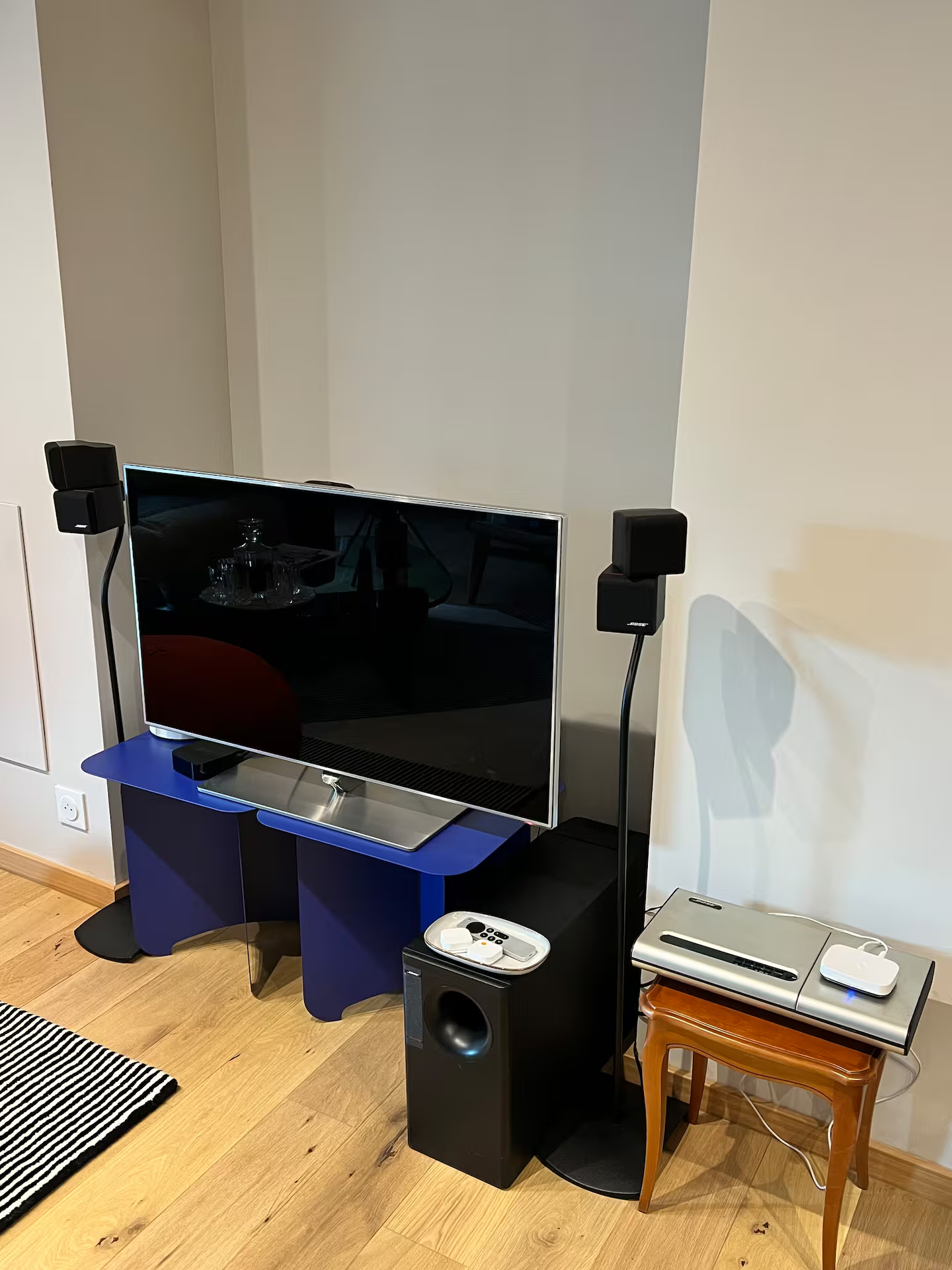 Unwind after a day of sightseeing with our high-end home cinema setup. The living area features a large 4K Smart TV, offering a truly immersive viewing experience. With high-speed fiber internet and integrated streaming apps, you have instant access to your favorite platforms, including Netflix, YouTube, and more. Simply log in to your personal accounts and enjoy a movie night with premium sound and picture quality, all from the comfort of our designer sofa.